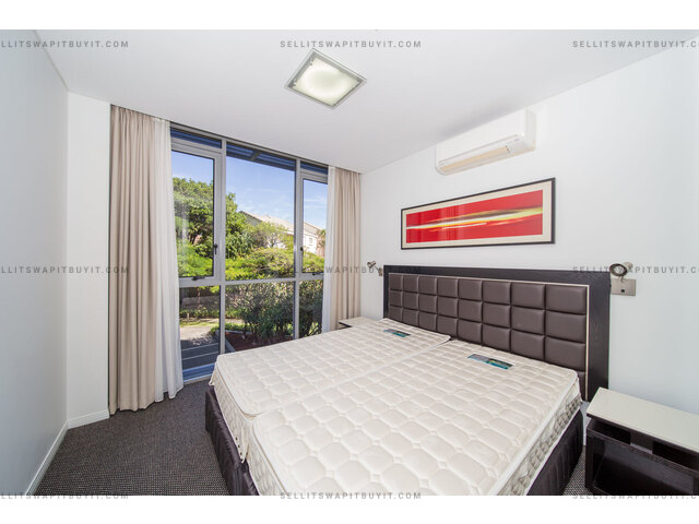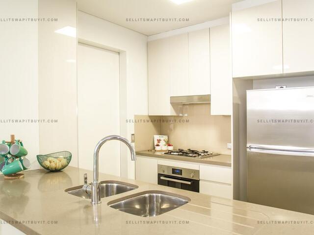 It comes fully-furnished in a secured building. Air-conditioning and fans throughout. Amenities include modern stainless steel kitchen appliances, gas cooktop, dishwasher and washing machine.