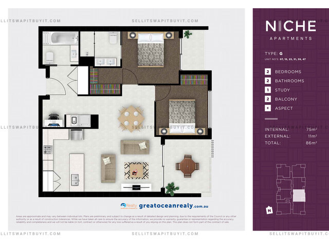 • 2 bedrooms, 2 bathrooms + mini study area, all the bedroom facing East ocean side