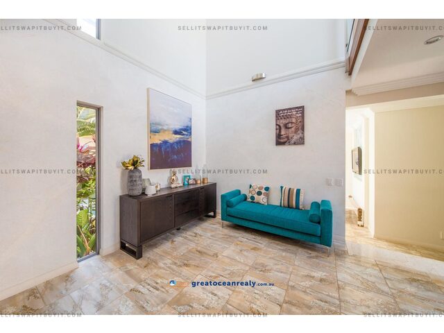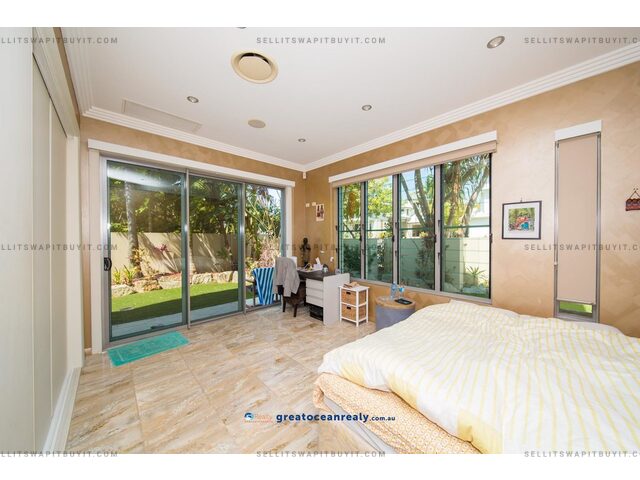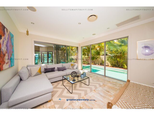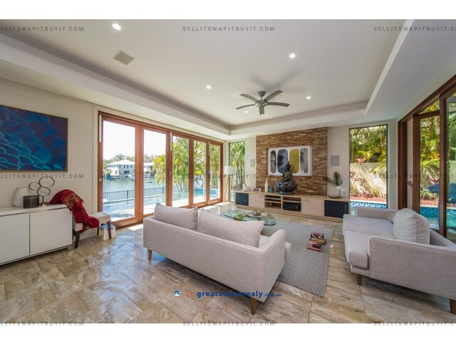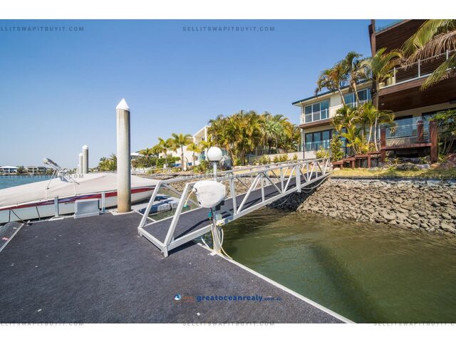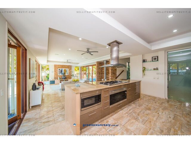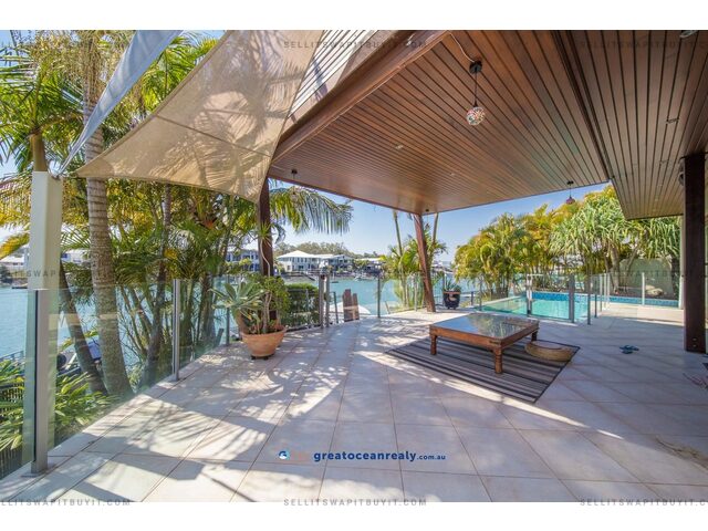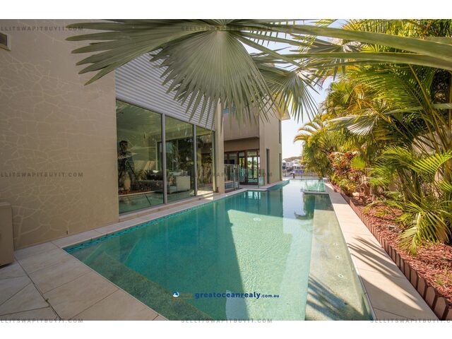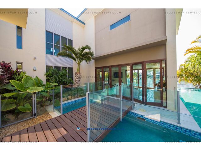 This north facing, architecturally designed large 5 bedroom house has so much to offer, extra high ceilings, abundance of natural lights, , marble tiles, the open plan living with the views of the wide open Coomera river. The king size master bedroom has a massive elegant walk-in-robe and fully tile with Italian Carrara marble ensuite with an elevated heated spa. The master chef kitchen has a large stone-top island bench, quality German brand Miele appliances, a walk-in-pantry and the views of the water. The infinity pool wrapping around the building, an outdoor spa, teak Sauna room, the pontoon, the large underroof outdoor entertainment area would be a perfect place to enjoy your summer afternoon with all your friends and families.