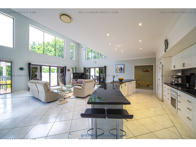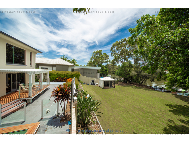 Rare opportunity is here for you to own this large riverside property, 5 Bedrooms Home on a 2069m2 Riverside Block. Site in a beautiful, tranquil, secured gated small community, There is a lake in the centre surrounded by the well maintained tropical garden, the walking path leads to the community pontoon, you can catch the mud crabs off the river.