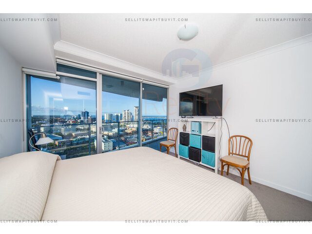 The unit has floor to ceiling glass and large balconies. There are one good size bedroom and a study area, main bedroom has beautiful views ocean, beach and hinterland. Gourmet kitchen has island benchtop, gas cooking and stainless-steel appliances and plenty storage spaces. Fully tiled open plan living has air conditioning for comfort.