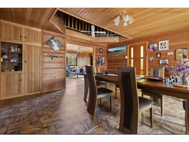 This home offers an abundance of accommodation – up to 6 bedrooms, 2 bathrooms and multiple living rooms. Extensive use of timber throughout gives the property a really cosy feeling echoing the bush surrounds perfectly.