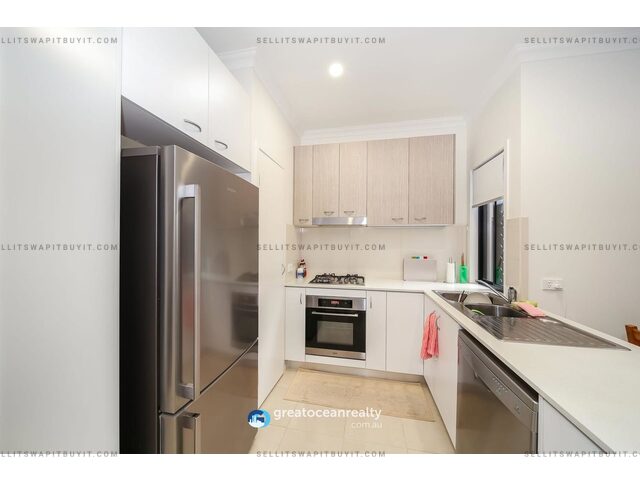 The fully equipped kitchen has quality stainless steel kitchen appliances, oven, dishwasher, gas cooktop, large fridge space and plenty storage cabinet spaces.