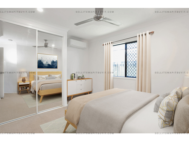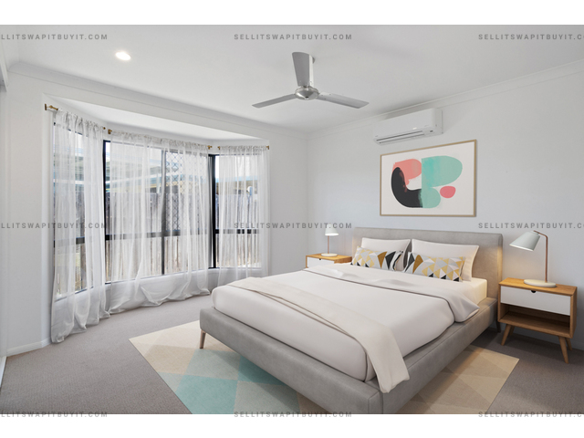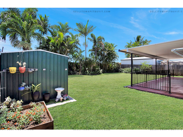 Walk through the front door to your lounge/dining area and kitchen with bay windows to keep an eye on the kids at the park. The kitchen boasts two pantries for all of your Pinterest-worthy organising. With air conditioning and ceiling fans throughout, the generous-sized main bedroom leads to the two-way bathroom including a separate bathtub and a nice-sized shower. Featuring a secure, fully fenced yard with lots of room for entertaining out the back with a huge 49.5m2 patio including a removable pet/child barrier, a garden shed, and tropical landscaped gardens including two veggie patches and a fruiting lime tree.