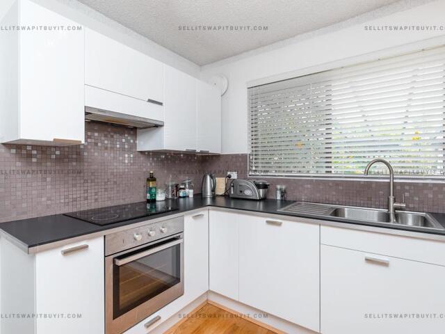 - Renovated kitchen with ample cupboard space and electric appliances