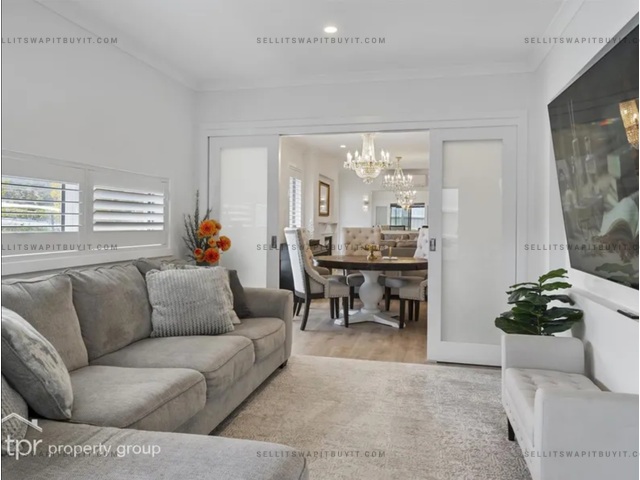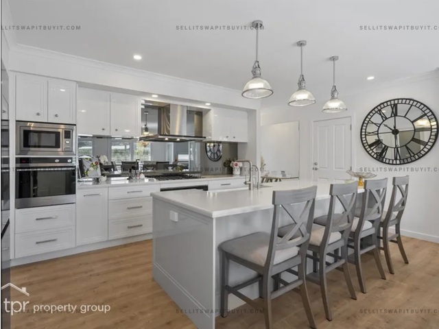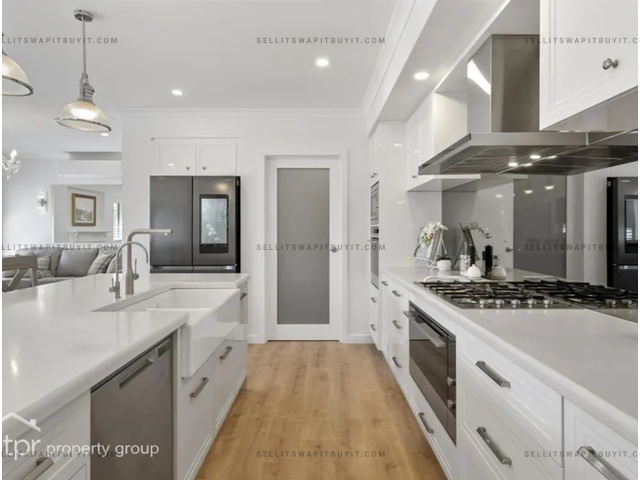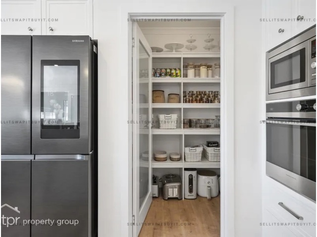The centerpiece of this home showcases the perfect blend of design and functionality. The open-plan kitchen, dining, and living areas create a harmonious space that is ideal for intimate family gatherings as well as grand entertaining. The kitchen is a chef's dream, boasting Caesarstone benchtops, high-end appliances, mirror splashbacks, a double farmhouse sink, a breakfast bar, filtered tap water, and a walk-in pantry. To add a touch of innovation to your culinary haven, the sale includes the Samsung Family Hub smart fridge.