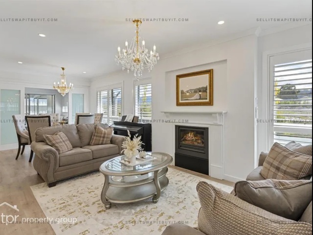 As you explore the rest of the home, you will be captivated by the exquisite details that set it apart. The lounge and dining areas are adorned with elegant chandeliers, a heat pump provides year-round comfort, a custom-built mantel adds a touch of uniqueness, and a remote-controlled gas heater creates a cozy atmosphere during winter evenings. Plantation shutters grace the windows, offering privacy while maintaining a timeless aesthetic.