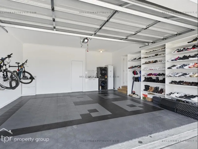 For car enthusiasts and those who appreciate organization, the home includes an internal garage with a laundry area and interlocking Vevor garage tiles, offering both convenience and aesthetic appeal.