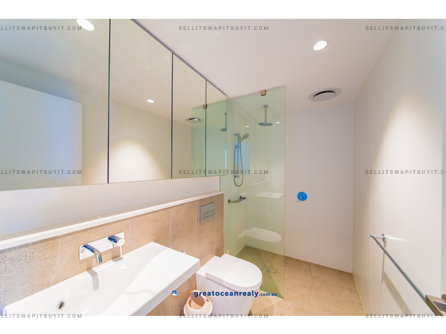 If you love the beach and surfing, you must come to see this luxury two bedrooms, two bathrooms (master has ensuite) apartment right in front of the Surfers Paradise beach. Walk out the building is the golden sandy beach, you would enjoy the fantastic facilities in the building, the state of art Gym with views of the Pacific Ocean, the theatre room, the meeting room, the Sauna, and the infinity pool right on the beach. This is a big unit with two queen size bedrooms, the open plan living area has two separate area, one for the formal lounge and another dinning area. The modern kitchen has island kitchen benchtop, German brand Bosch appliances, gas cooktop, though the last glass sliding door is the balcony with views of Pacific Ocean. The master bedroom has walk-in-robe and ensuite.