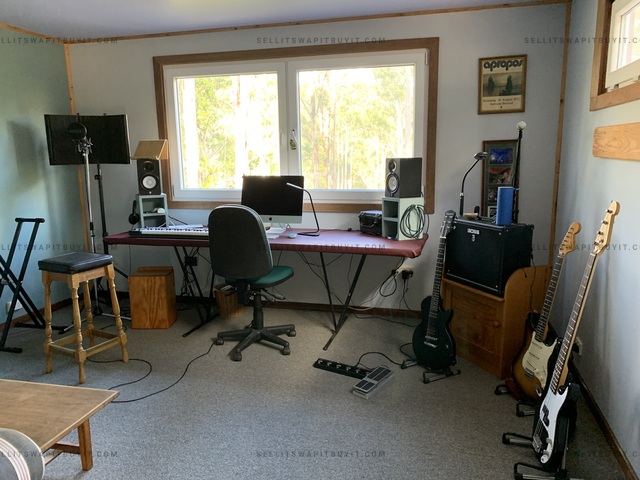Just shy of the main house and workshop is a newly built two room studio 48sq.mtrs ,currently used as a music studio with potential for one or two more bedrooms. One room carpeted and both rooms well insulated with double glazed windows throughout.