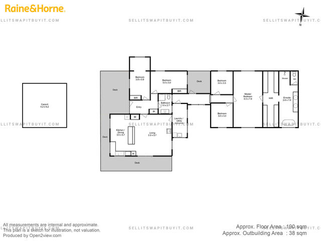 A choice of wood heating and heat pump/air conditioning, as well as wall, ceiling and underfloor insulation, result in a pleasant year-round temperature. There is a spacious master bedroom/retreat with 'his' and 'her' walk-in robes and an en-suite with freestanding bath plus shower. The kids can close the door on their wing for more peace and privacy.