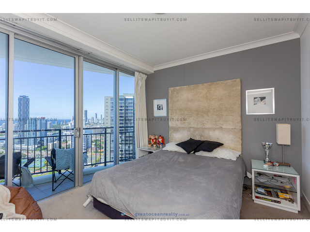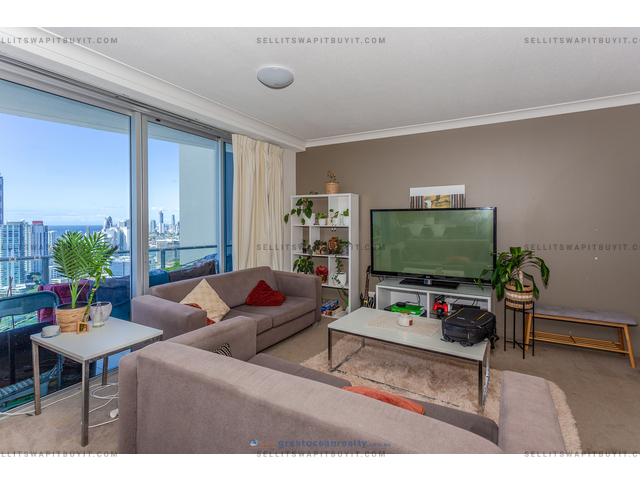 * Spacious open plan living area enjoying south east views taking in the Pacific Ocean, Broadwater and surfers skyline * Master bedroom with walk in robes, balcony and ensuite on one side of the apartment enjoying a view of the vast ocean * The Other two bedrooms with built in robes and ocean views as well * The whole unit with ducted air conditioning * Residential only, secure complex with basement parking, lift & pet friendly * Excellent facilities: indoor/outdoor pools, gyms, steam room, sauna, BBQs and more * Easy walk to the Broadwater, across the road from Australia Fair shopping centre * currently under tenancy but can be made ready for owner-occupier within 2 to 3 months time;
