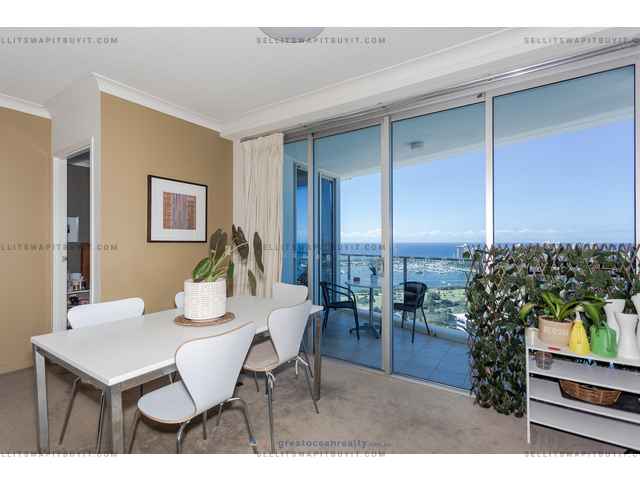 Sitting on the 30th floor of Southport Central Tower 1 is this incredibly beautiful apartment with an unparalleled view facing the Broadwater, Pacific Ocean and Surfers Paradise. The apartment includes two lounges with an open kitchen equipped with gas cooktop, fridge, microwave, oven, washer and ducted air conditioning with a total floor area of 148 square meters. It is just paces away from the Southport tram station, public buses stops, the Australia Fair shopping mall and China Town. Downstairs are dining houses providing a wide variety of local and foreign food tastes from many countries including Southeastern Asian region.