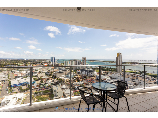 This north facing modern home capture the beautiful Pacific Ocean views. Central CBD location, 100m easy walk to the ocean beach and Broadwater Parkland. Lower Bodycorp Fees!