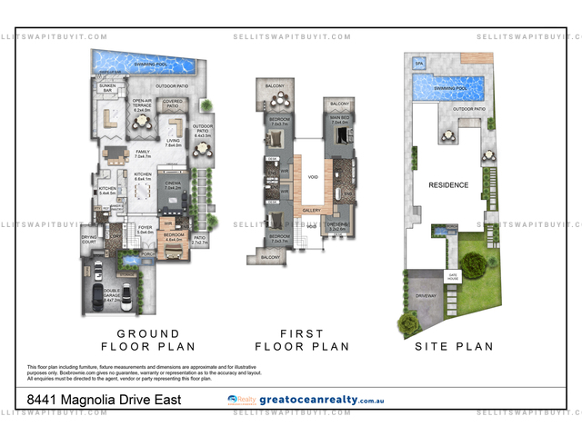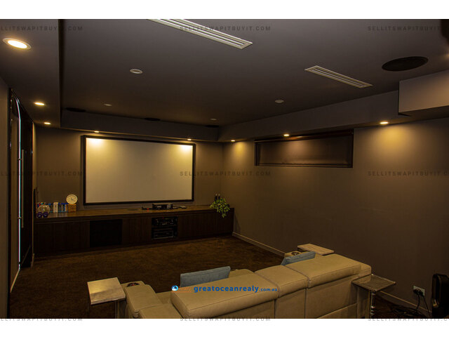 From the purpose-built cinema with seating for eight people to the bright and airy living room and the lounge with a sunken swim-up bar, this is one for the avid entertainer. An open-air terrace allows you to dine alfresco throughout summer while the side patio is perfect for casual breakfasts in the sunshine.