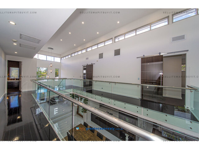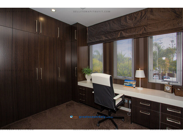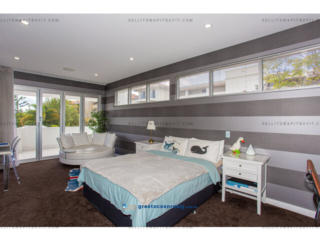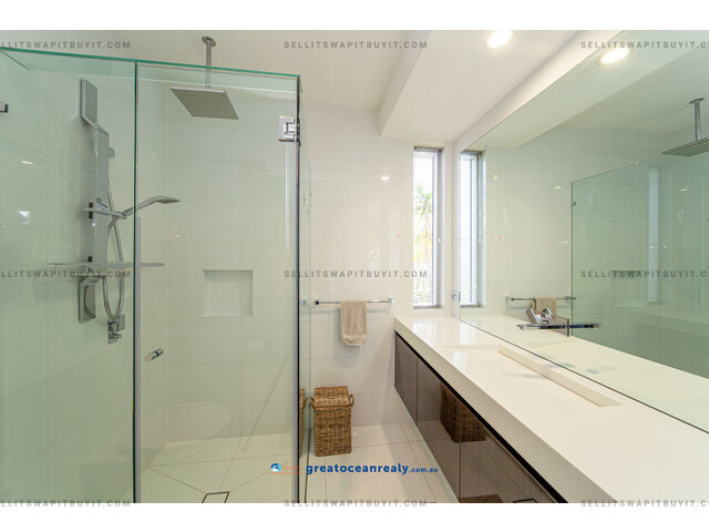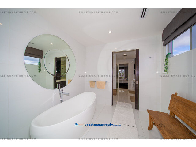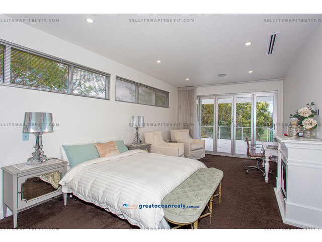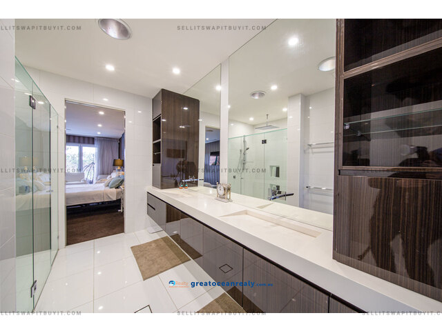There is a guest suite housed on this level while three more bedrooms are located on the upper-level in the sleeping quarters. Two guest bedrooms both have ensuites, built-in desks and walk-in robes, plus access out to private balconies.