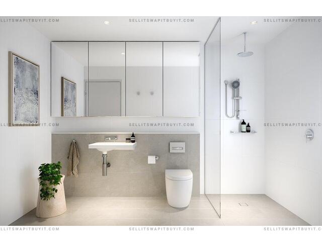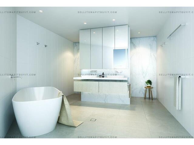 工匠精神体现对细节品质追求153 居室海景套房浴房 - 艺术效果图海景阳光名筑,自然匠心独运。每套公寓的选材和漆料处处彰显完美品质,对工艺细节的不懈追求更是现代建筑中所罕见。海滨黄金地段,惬意时尚生活,完美品质,无出其右。开放式美食厨房,精致浴室,设施完善,精美装修,巧妙设计。定制橱柜优化存储空间,落地门窗将如画海景及自然采光发挥到极致。