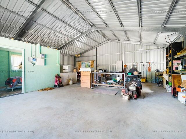 Large 10m x 10m Shed with power- separate metre, separate room, shower, vanity, toilet and full kitchen and has its own hot water system and water tank this is highly sought after but rarely found, this shed can make a great man cave or teenage retreat or studio for your hobbies, the options are endless!