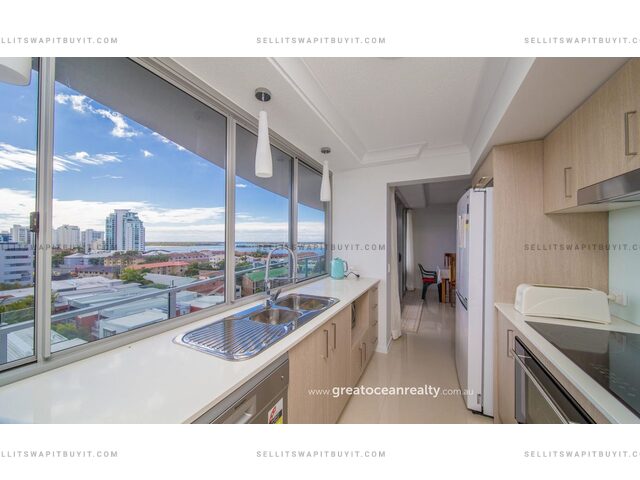 This contemporary new apartment has a large master bedroom with an ensuite and walk-in-robe. The second bedroom has a balcony with views of the hinterland. Walk through the north facing formal lounge room is the balcony with stunning views of the ocean and broadwater parkland. The fully-equipped kitchen has quality stainless steel appliance, large fridge space and 900mm glass cooktop and oven.